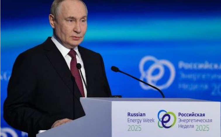 १६ अक्टूबर २०२५ को मॉस्को में रूसी एनर्जी वीक में भाषण देते राष्ट्रपति व्लादिमीर पुतिन।