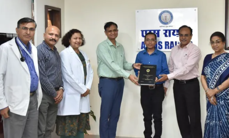 (अपने प्रोजेक्ट के बारे में एम्स की टीम को समझाते हुए तरुण साहू। एम्स प्रबंधन)